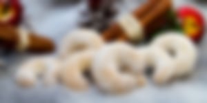 8. Kipferl in Puderzuckermischung legen und von allen Seiten darin wenden